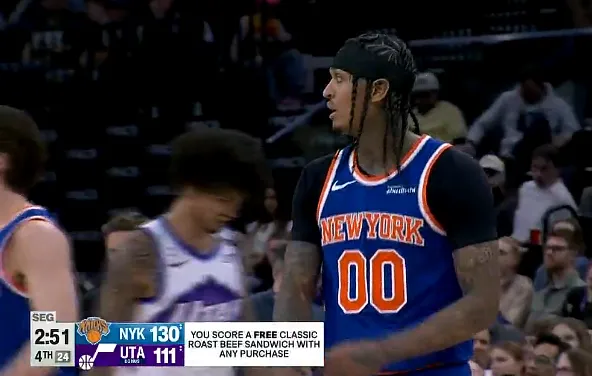 第四节比赛中,克拉克森末节5中5砍下13分,尼克斯末节轰出34-17逆转爵士。